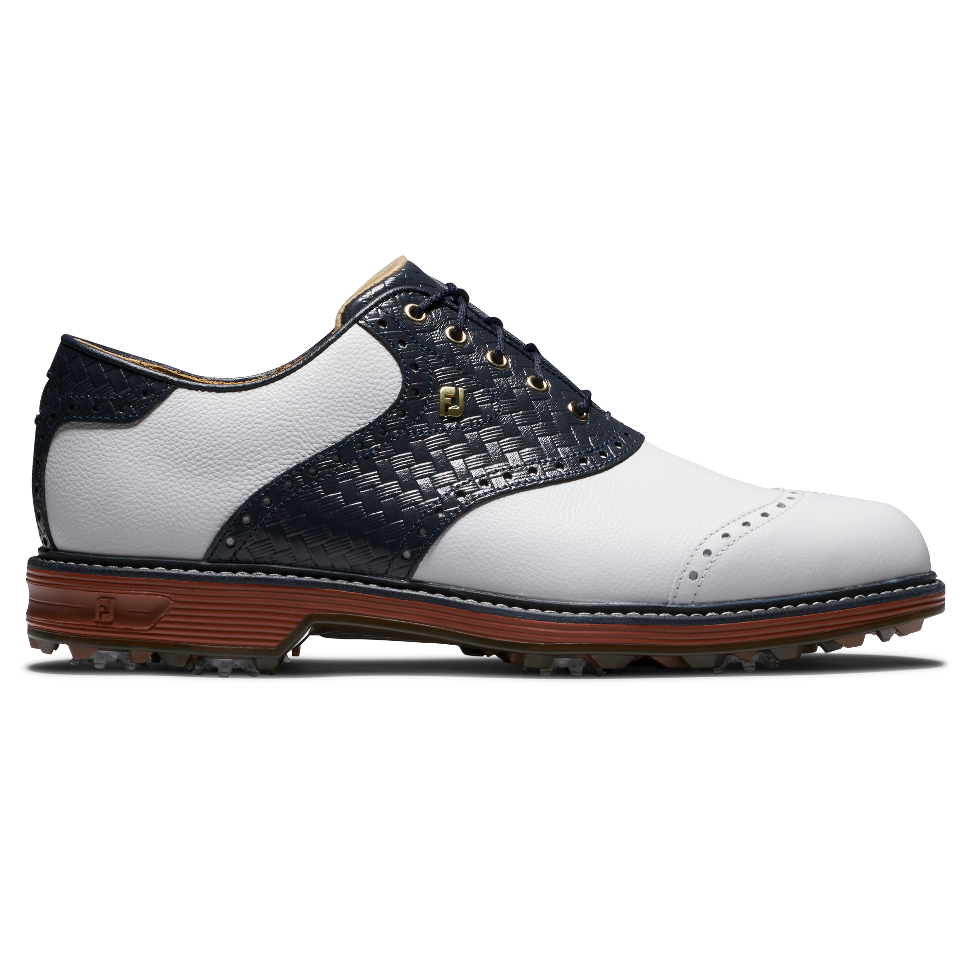 Experience a new standard of style and craftsmanship with FootJoy's latest Limited Edition release, the "Red Clay" Premiere Series. Drawing inspiration from the storied golf legacy and iconic red clay of Pinehurst, North Carolina, these shoes seamlessly blend tradition, innovation, and elevated design. The Red Clay Premiere Series’ statement-making design marries a clay-colored outsole with a luxurious pebbled leather upper featuring a distinctive navy basketweave saddle.